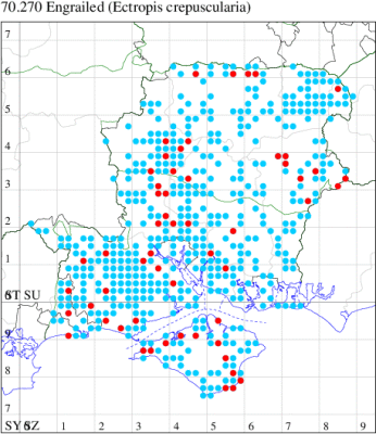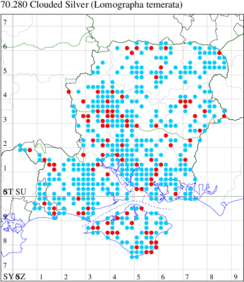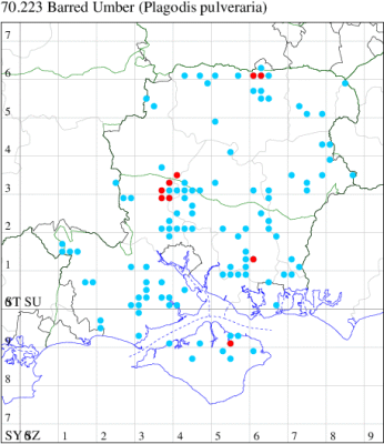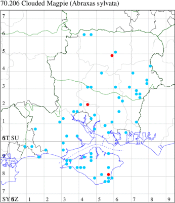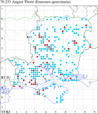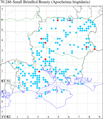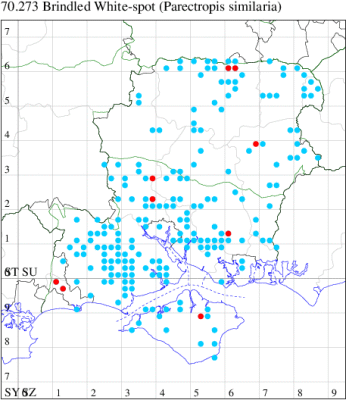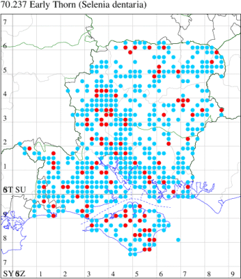 VC11: Earliest: Marchwood, 09 May, 1 (CTha) Latest: Allbrook, 06 Sep, 1 (SIng) Max count: Botley Wood, 13 Aug, 13 (MLO, ADT, DWal, KJW)