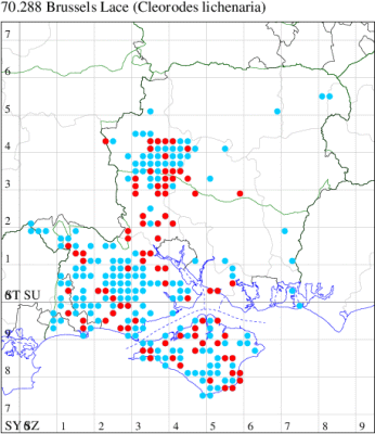VC11: Rockford Common, NF, two, transect, 23 Jun (MCur); one, transect, 28 Jun (BWT); Vales Moor, NF, one, transect, 04 Jun; one, transect, 04 Jun; four, transect, 04 Jun (JaFre); Hasley, NF, one, transect, 31 May (IJoh); Blackwater, NF, one, transect, 05 Jun (TRea); Black Down, NF, two, transect, 05 Jun (LHan); Beaulieu Heath, NF, one, transect, 22 Jul (DHan); Black Down, NF, one, transect, 13 Aug (LHan); Needs Ore NNR, one, 09 Sep (CBut, SCol);