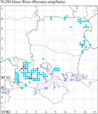 VC11: Furzehill, NF, one, 11 Jun (SLoa); Hasley, NF, one, transect, 14 Jun (JMah); Wilverley Plain, NF, three, 24 Jun; Hinchelsea Moor, NF, two, 22 Jun (PBar); Blackwater, NF, one, transect, 15 Jun (TRea); Broomy Plain, NF, one, transect, 26 Jun (AHum); Woodlands, NF, present, 11 Jun (RBW); Hurn, one, 12 Jun (MJef);