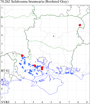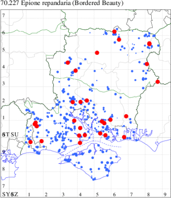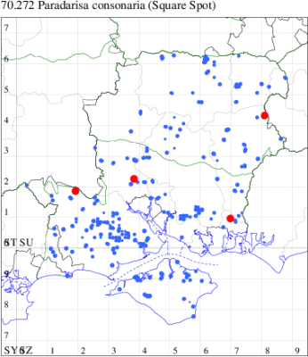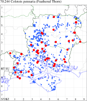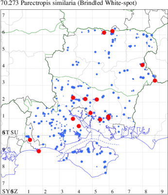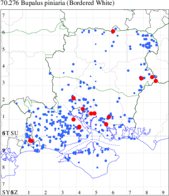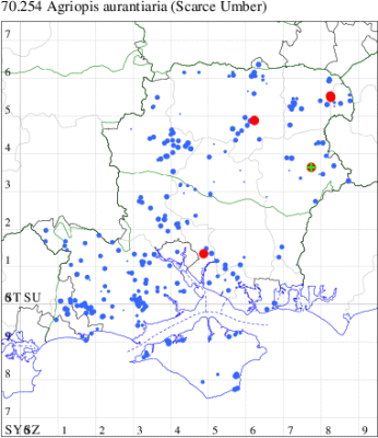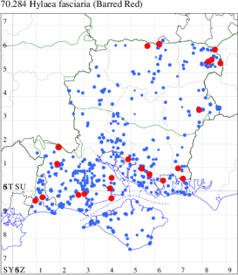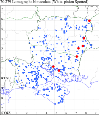 VC11: Earliest: Blashford Lakes HIWWT NR, 27 May, 1 (PWhtk) Latest: Marchwood, 05 Oct, 1 (TDCh) Max count: Stanbridge Earls, 13 Jun, 9 (JRM)