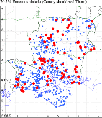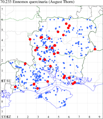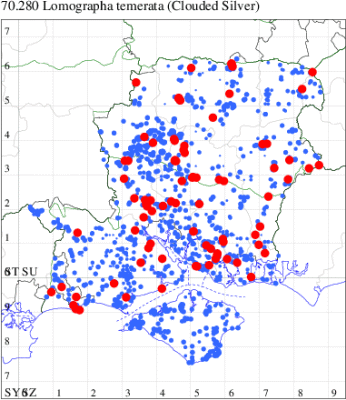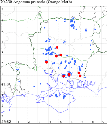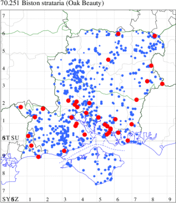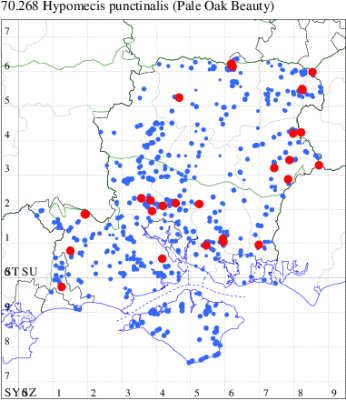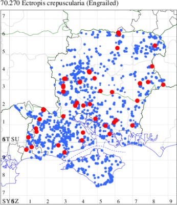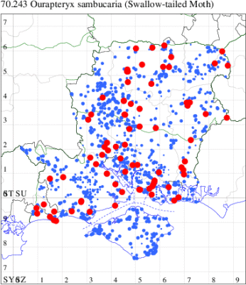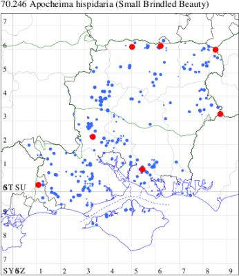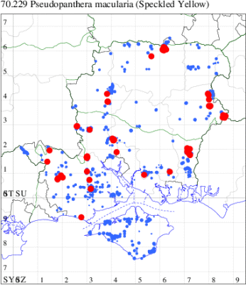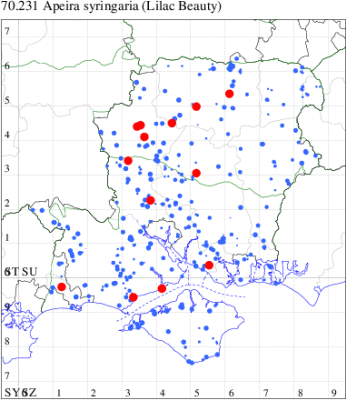 VC11: Earliest: Browndown Coastal Ranges, 05 May, 1 (F.M.G.) Latest: Botley Wood, 08 Sep, 1 (F.M.G.) Max count: West Wellow, 08 Aug, 5 (CNB)