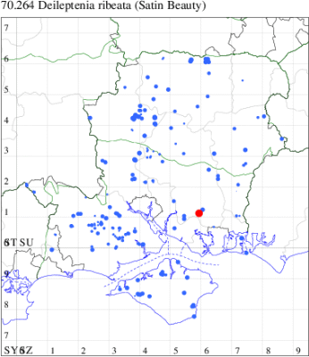 VC11: East Tytherley, one, 27 Aug (GCE); King's Copse Inclosure, NF, one, field observation, 29 Jul (SKei); Winchester, one, 21 Jul (THW); Warsash, one, field observation, 19 Jul (TFar); Fareham, one, 11 Jul (ADT); one, 18 Jun (KJW); Dean, Bishop's Waltham, present, 19 Jun; present, 25 Jun; present, 02 Jul; present, 14 Jul; present, 12 Aug; present, 20 Aug (CMor); Wickham, one, field observation, 31 May (DdS); Waterlooville, one, 24 Jun (DWhe); Lovedean, one, 19 Jun (ARJa); Old Winchester Hill NNR, one, field observation, 06 Aug (PAB); Hurn, one, 16 Jun; one, 19 Jun; one, 20 Jun; one, 26 Jun; one, 28 Jul; Hengistbury Head, two, 12 Jun (MJef); Needs Ore NNR, five, 24 Jul (CNB); six, 24 Jul (PCra); seven, 09 Aug; five, 16 Aug (CNB); one, 24 Jul (PCra); Warren Farm, North Solent NNR, one, field observation, 12 Aug (LStr); North Solent NNR, three, field observation, 10 Aug (RAC); Needs Ore NNR, one, 24 Jul (PCra); Needs Ore, one, field observation, 20 Jul (LStr); three, field observation, 10 Aug (RAC); one, field observation, 27 Aug (AOrm);