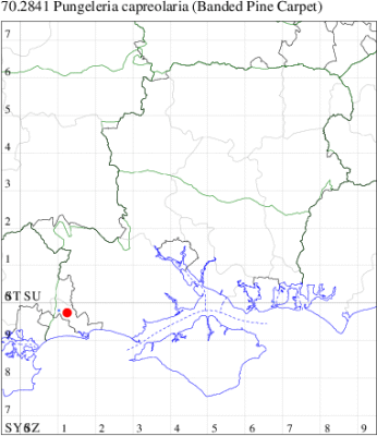 Common in coniferous woodland, plantations and gardens throughout the British Isles. Widespread and common in Hampshire and on the Isle of Wight. Wingspan 28-34 mm. Worn specimens could be misidentified as Dusky Peacock M. signaria, an extremely rare immigrant, which see. Larva feeds on various coniferous trees, including Scots Pine and Norway Spruce, over-wintering as a pupa.