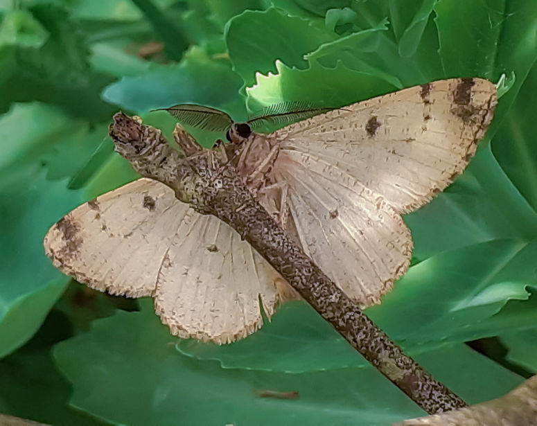 Local in broad-leaved woodland and scrubby heathland throughout much of southern England, north-western England and western Scotland. In Hampshire and on the Isle of Wight fairly common throughout, and often very common in birch woodland. Wingspan 28-32 mm. The main confusion species is Sharp-angled Peacock M. alternata, which see. Larva feeds on Birch and Sallow, over-wintering as a pupa.