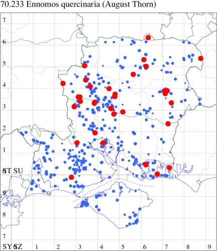 VC12: Earliest: Upper Inhams Copse, Pamber Forest, 14 May, 2 (GJD) Latest: Upper Inhams Copse, Pamber Forest, 01 Sep, 1 (GJD) Max count: Goodworth Clatford, 17 Aug, 4 (WLid, TJN, LFom)