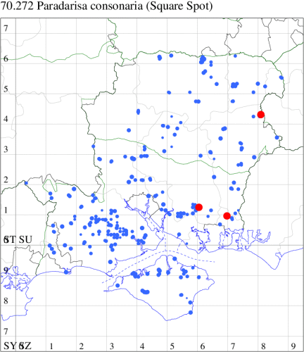 VC11: Earliest: Waterlooville, 12 May, 1 (DWhe) Latest: Sway, 13 Aug, 1 (SKee) Max count: Dibden Purlieu, NF, 03 Jun, 4 (RAC)