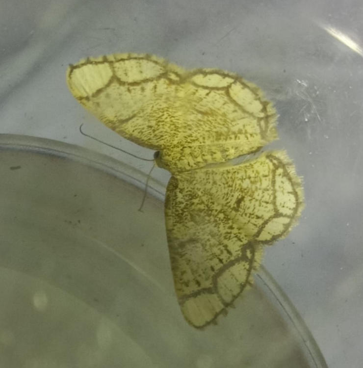 Common in farmland, gardens, calcareous grassland, acid heathland and moorland throughout most of the British Isles, a species of conservation concern under the UK Biodiversity Action Plan. In Hampshire and on the Isle of Wight quite common on the chalk and in waste places with clover, and also found in clover crops. Wingspan 26-32 mm. Flies both by day, in warm sunshine, and at night. Although distinctive, it has been confused with Common Heath Ematurga atomaria, but only Latticed Heath has such conspicuous, black veins; there is a confusing black form alboguttata, which is best distinguished by the chequered fringes. Larva feeds on Hare's-foot Clover, White Clover, Red Clover, Bird's-foot Trefoil and Lucerne, over-wintering as a pupa.