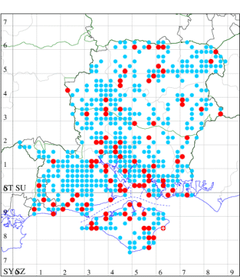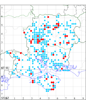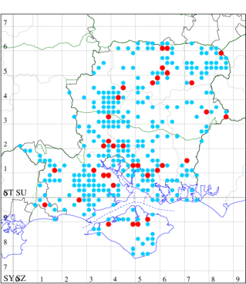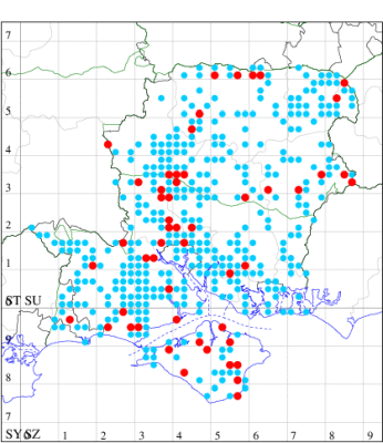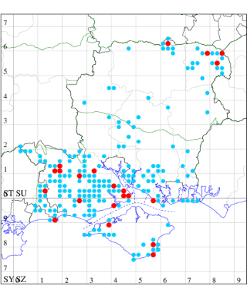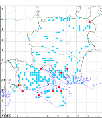 For the maps, all records prior to 2022 are shown by a blue dot (the larger the dot, the more recent), with the current year's records shown in red. As previous records are superimposed on any report for 2022, new sites have greater emphasis (i.e. will show as 'more red').