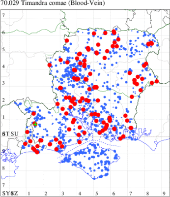 VC11: Earliest: Broomy Inclosure, NF, 14 May, 1 (RHun) Latest: Sway, 16 Sep, 1 (SKee) Max count: Needs Ore NNR, 23 Jul, 7 (CNB)