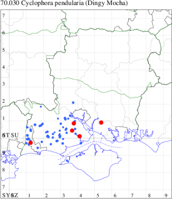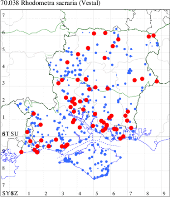 VC11: Earliest: Horsea Island, 19 May, 4 (F.M.G.) Latest: Hengistbury Head, 11 Sep, 1 (MJef) Max count: Needs Ore NNR, 10 Jun, 9 (CNB)