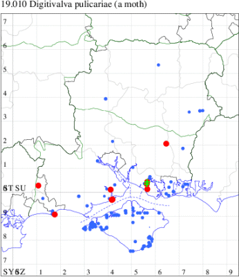 Common in hedgerows and waste ground throughout much of southern England, with records north to Lancashire. In Hampshire and on the Isle of Wight reasonably common especially in the south-east of the county and on the Island. Wingspan 11-13 mm. Larva mines leaves of Woody Nightshade and Deadly Nightshade.