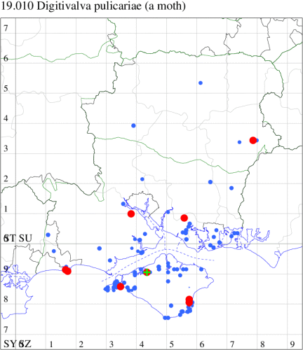 VC11: Marchwood, one, 07 Aug (CTha); Funtley, one, 11 May (TDC); Hengistbury Head NNR, one, 30 Jul; one, 18 Jul (MJef det. RJD);