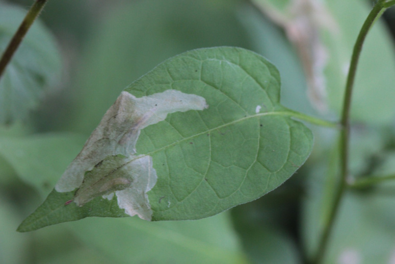 VC11: Ashurst, NF, mine, present, bittersweet, 29 Jul (JOug); Baker's Pond, Rownhams, mine, 20, larva in mines , in Bittersweet, 21 Jun; Cromarty Pond area, Lord's Hill, mine, present, several leaf-mines on Bittersweet. Tenanted leaf-mines on Bittersweet, 07 Aug (JClx); Romsey, one, 15 Sep (NRJ); St Catherine's Hill NNR, Winchester, mine, one, on Woody Nightshade, 08 Jun (WLan); Titchfield Haven NNR, mine, two, on Bittersweet, 25 Aug (DPH); Fareham, one, det gen, 01 Sep (MLO det. RJD); Cams Bay, Fareham, mine, present, 08 Sep (AMD); Bishop's Waltham, mine, present, on Solanum dulcamara, 10 Sep (DTru); Milton Common, vacated mine, present, 03 Oct; Clanfield, vacated mine, present, 04 Oct (AMD); Stroud, Petersfield, one, indoors, 07 Jan (RAll); Hengistbury Head NNR, one, 09 Aug (BKin det. MJef); one, 09 Aug (MJef); Station Road, Hayling, mine, present, 19 Aug; Sandy Point NR, mine, present, 20 Sep (AMD);