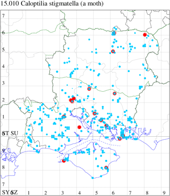 Ref: Plant, C.W., 2023. Whatever happened to Caloptilia alchimiella? The Entomologist’s Record and