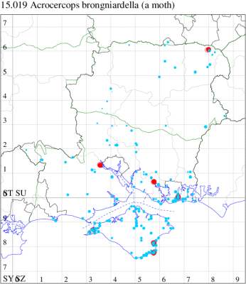 For the maps, all records prior to 2020 are shown by a blue dot (the larger the dot, the more recent), with the current year's records shown in red. As previous records are superimposed on any report for 2020, new sites have greater emphasis (i.e. will show as 'more red').