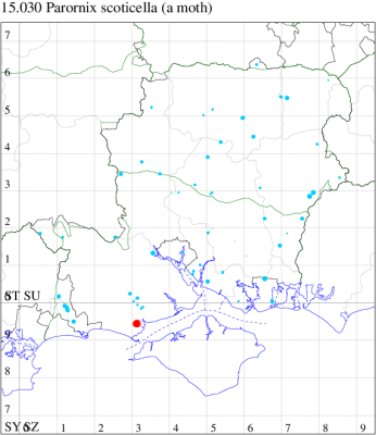 Local in damp woodland, fens and cornfield edges throughout much of England, rare in Scotland and Ireland. In Hampshire and on the Isle of Wight recorded from all three vice-counties, but evidently rare and taken mostly as single specimens. Wingspan 10-11 mm. Imago fairly regular at light, but more frequently recorded in the larval stage, when mines are relatively easy to find where they are present. Larva mines leaves of Redshank, Black-bindweed, Common Sorrel, Sheep's Sorrel, Broad-leaved Dock, Water Dock and Yellow Loosestrife, subsequently living within a leaf-roll.