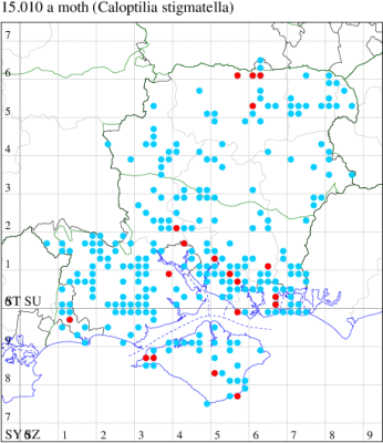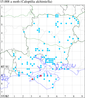 Ref: Plant, C.W., 2023. Whatever happened to Caloptilia alchimiella? The Entomologist’s Record and