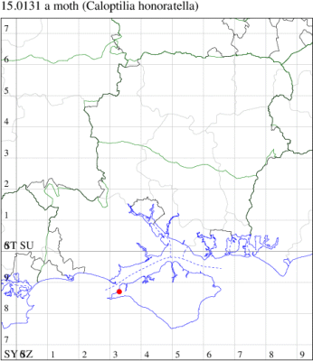 VC11: Broughton Down, one, 12 Jun (MBot); Marchwood, one, 06 Sep (CTha); Woodlands, NF, present, 24 May (RBW); Totton, one, 11 Sep (CNB); one, 15 Jul; one, 17 Jul; one, 14 Aug; one, 25 Aug; one, 04 Sep (LHan); Winchester, one, 28 May; one, 10 Sep (THW); Fareham, one, 01 Jul (IMcP); one, 03 Jun; one, gen det, 07 Sep (MLO det. ); Hilltop, The Hangers, one, 12 Jun (SIng det. DPH); Portsdown, larval spinning, three, on host-plant, on privet, 20 Sep (RJD); Great Salterns NR, Portsmouth, larval feeding signs, present, field observation, 30 Sep (MRY, JRL); Hurn, one, 15 Aug (MJef); Tuckton, Christchurch, one, 24 Jul (APar);