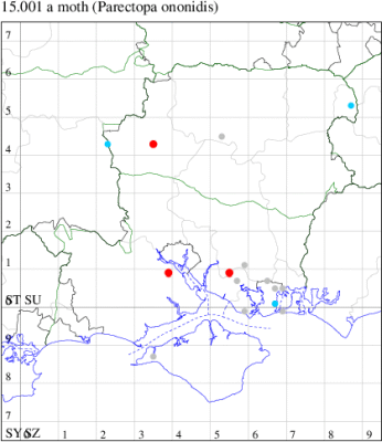 VC10: West High Down quarries, one, 12 Jul (IOu); Totland, one, 28 May (RTer); Plaish, Carisbrooke, one, 20 Jul; one, 22 Jul; Lower Hamstead, one, 24 Jul (KRyl); Shanklin, one, 31 Jul; one, 02 Aug; one, 03 Aug; one, 15 Aug; Osborne Wood, two, 13 Aug (IOu); Wootton Bridge, one, 18 May (BJon);