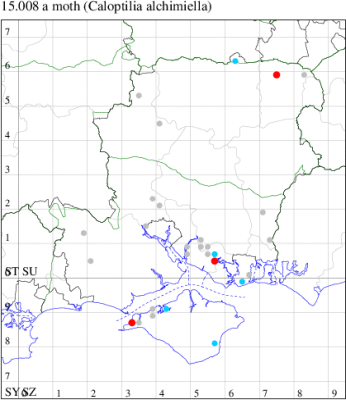 Ref: Plant, C.W., 2023. Whatever happened to Caloptilia alchimiella? The Entomologist’s Record and