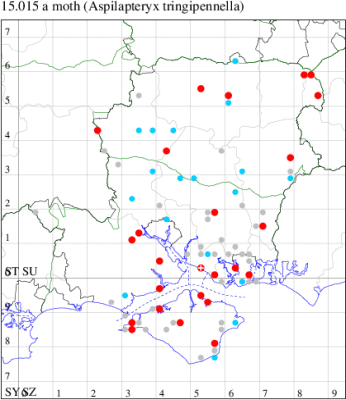 For species seen in 2022 that had less than or equal to 100 records, full details are included; for more common species, the earliest, latest and highest count by vice-county are shown. The narrative for each species is taken from the main Hantsmoths website, and it is possible that some information on abundance and occurrence can get out of date, as it is impossible to keep up with all changes; however it should give a good introduction to each species. The tables in each species account summarise the previous status, and that for the current year.