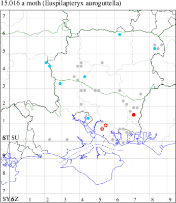 In Hampshire and on the Isle of Wight seemingl more common than C. alchimiella, although the true distribution of records historically is unknowable due to many records not being supported by critically examined specimens: robustella was only separated from alchimiella in 1972 and for many years, with reference to Heath & Emmet (1985) : 'The Moths and Butterflies of Great Britain and Ireland, Vol. 2', the two species could be differentiated externally by a number of characteristics;