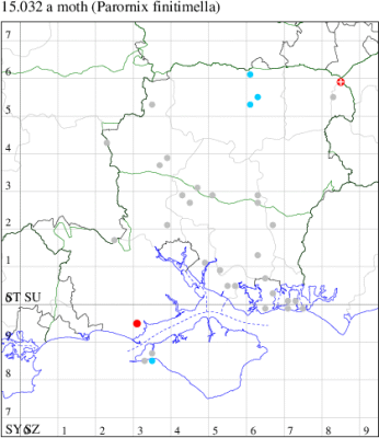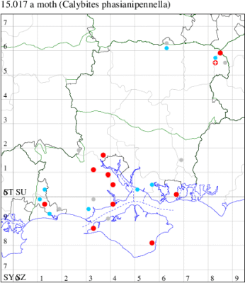 VC11: Marchwood*, one, 19 Jul (CTha); Franchises Wood, NF, present, 22 Aug (RBW); Lee, two, 10 Jun (CTha); Dibden Purlieu*, one, 13 Aug (RAC); Portsmouth, one, 08 Jul; one, 18 Jul; one, 14 Aug (IRT); Hurn, one, 12 Jul; one, 27 Jul (MJef); Needs Ore NNR, one, 05 Aug; one, 27 May; one, 07 Jun; one, 14 Jul; four, 21 Jul; one, 25 Jul; one, 06 Aug (CNB);