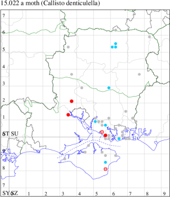 For the maps, all records prior to 2022 are shown by a blue dot (the larger the dot, the more recent), with the current year's records shown in red. As previous records are superimposed on any report for 2022, new sites have greater emphasis (i.e. will show as 'more red').