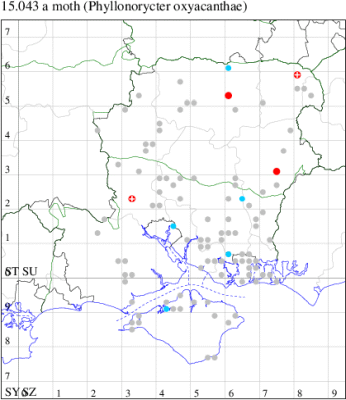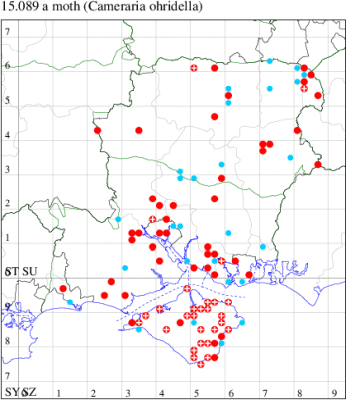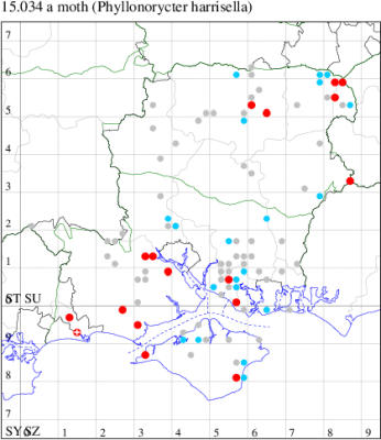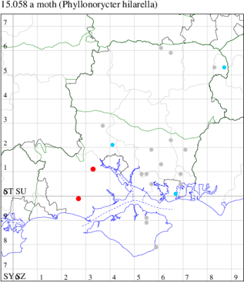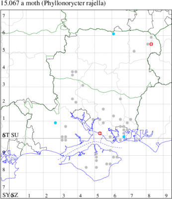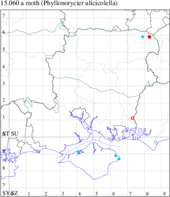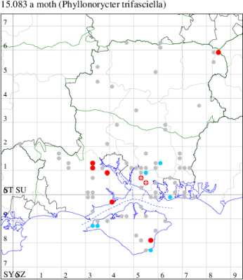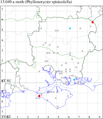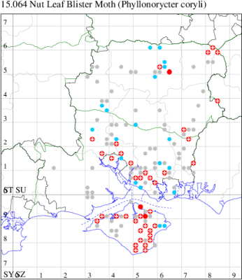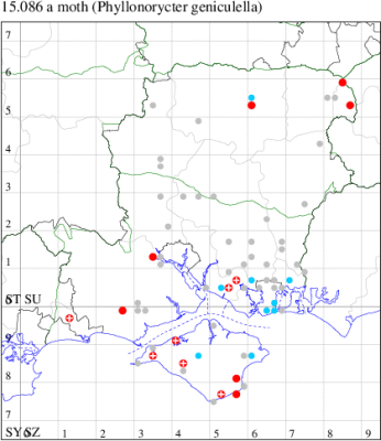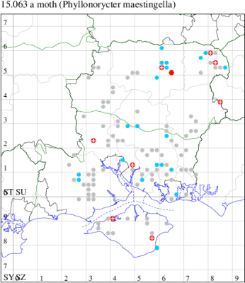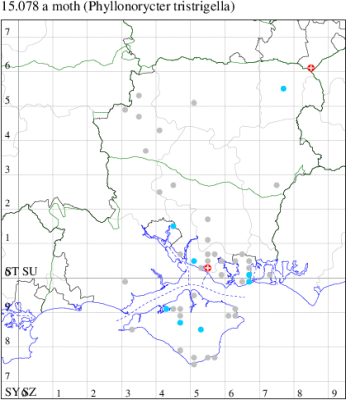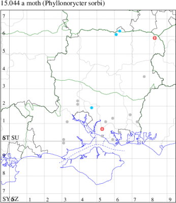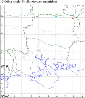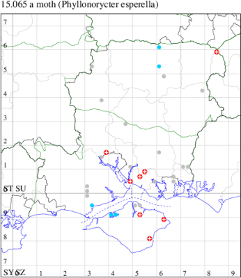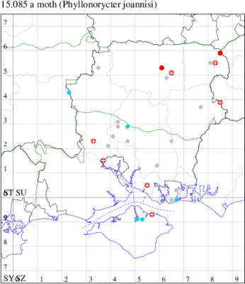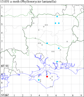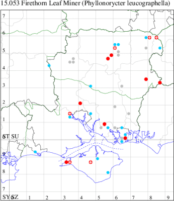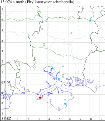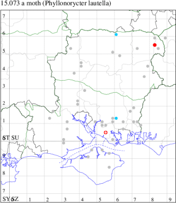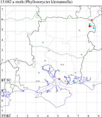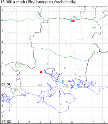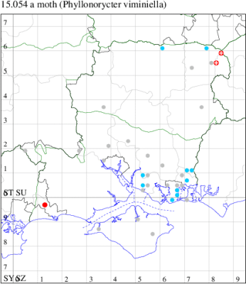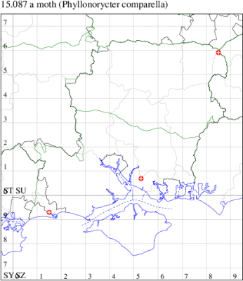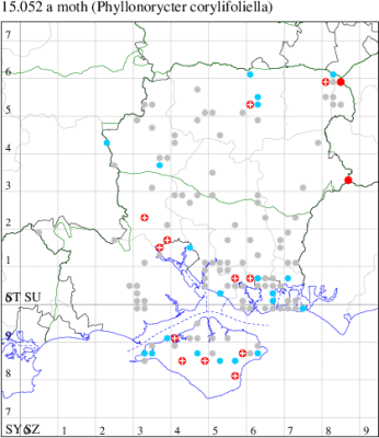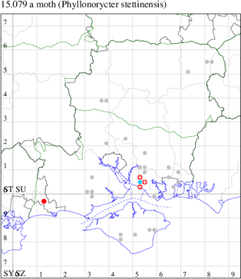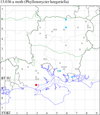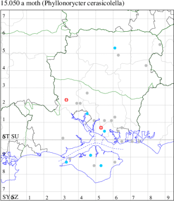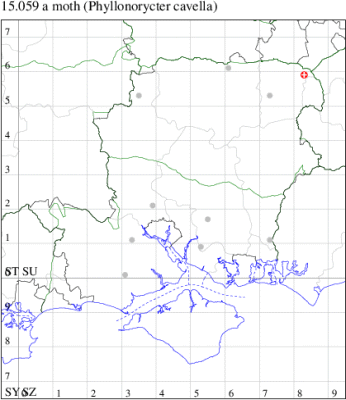 VC11: Marchwood, one, 11 Aug; one, 03 Oct; one, 18 Aug; one, 26 Oct (CTha); Totton, three, 27 Oct (LHan); Stanbrige Earls, mine, present, beech, 11 Oct (JRM det. LEva); Romsey, one, 09 Sep (KPea); Dibden Purlieu, one, 19 Oct (RAC); Southampton, mine, present, leaf mines on Beech , 12 Nov (NGrg); Brownwich cliffs, one, 29 Jul (MLO, DWal & KJW det. RJD); Catisfield, one, 14 Aug (ALR det. RJD); Stubbington, one, 27 Oct (DPH); Fareham, one, 10 Oct; one, det gen, 27 Oct; one, det gen, 30 Oct (MLO det. RJD); Place Wood, Southwick, mine, three, mines on Castanea, 23 Aug; Portsmouth, one, 05 May; one, 06 Jul; one, 17 Jul; one, 18 Jul; one, 29 Jul (IRT); Sway, one, 20 Jul; one, 19 Sep; three, 27 Oct (SKee); North Solent, Brockenhurst, present, field observation, 27 Aug (iNat);