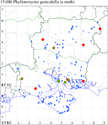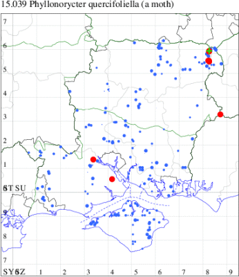 VC11: Blashford Lakes HIWWT NR, mine, present, fagus, 14 Oct; Fritham, NF, mine, present, fagus, 14 Oct (JOug); Romsey, one, 17 Oct (NRJ); Dibden Purlieu, NF, one, 19 Oct (RAC); Stubbington, one, 30 Sep; four, 20 Oct (DPH); Fareham, one, determined RJD, 07 Oct; two, 17 Oct; one, 21 Oct (MLO); mine, present, quercus ilex, 11 May (JOug); Cams Bay, Fareham, mine, present, 24 Sep (AMD); Portsmouth, one, 27 Jul (IRT); Waterlooville, one, 01 Sep; one, 30 Sep; two, 01 Oct; one, 04 Oct; two, 06 Oct; one, 08 Oct; two, 20 Oct; one, 22 Oct; one, 03 Nov (DWhe); Hengistbury Head, one, 30 Oct (MJef); Chewton Common, mine, present, 27 Jun (RPH); New Milton, one, field observation, 16 Oct; Sway, two, 01 Oct (SKee); Browndown, five, field observation, on oak, 07 May (IHrg det. MJW); Browndown Coastal Ranges, one, seen by day, 10 May (DWal); Browndown, one, field observation, 02 Jul (IHrg);