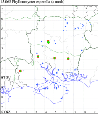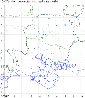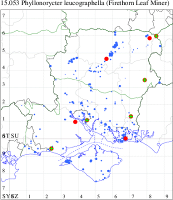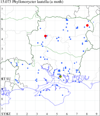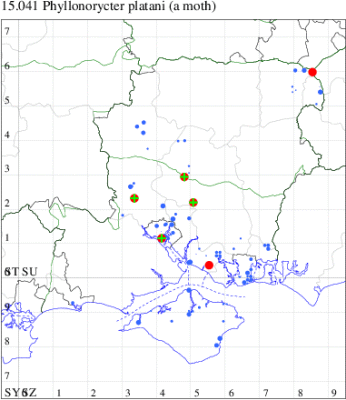 VC11: Romsey, one, 11 Sep (MJB); Dibden Purlieu, NF, present, 03 Sep; two, 04 Sep; two, 07 Sep; three, 09 Sep; one, 12 Sep (RAC); Hook Lake, Hook, mine, present, 31 Jul (AMD); Southampton, mine, 500, 13 Jul (PPir); Bitterne Park, Southampton, one, 10 Aug (MGP); Mansbridge, mine, present, 05 Aug (AMD); Bishopstoke, mine, present, 29 Jun (PPir); Thornhill, Southampton, one, 06 Sep; one, 06 Sep (PAB); Allbrook, one, 23 Jul; two, 09 Sep (SIng); Winchester, one, 16 Sep (THW); Stubbington, 16, 06 Sep; seven, 08 Sep (DPH); Fareham, one, 02 Jul; two, 12 Jul; one, 16 Jul; two, 18 Jul; two, 23 Jul; one, 25 Jul; 33, 27 Jul; five, 05 Sep; 11, 06 Sep; 10, 07 Sep; two, 08 Sep (MLO); mine, 1000, horsechestnuts plastered with mines, fresh and aging. , 15 Aug; mine, 20, mines on horse chestnut. Lysses Field car-park and area., 24 Oct (RJD); Cams Bay, Fareham, mine, present, 24 Sep (AMD); Portchester, one, 03 Sep; four, 07 Sep; five, 09 Sep (DH-J); Portsmouth, four, 27 Jul; one, 08 Sep; two, 11 Sep; one, 17 Sep (IRT); Waterlooville, one, 05 Sep; two, 08 Sep (DWhe); Havant, mine, present, horse Chestnut, 05 Jul (JOug); Muscliffe, one, 11 Sep (KingB); Bournemouth, one, 07 Jul (WSoa, SMorr); Tuckton, Christchurch, four, 06 Sep (APard); Barton on Sea, mine, present, many, 12 Jul; Sway, two, 23 Jul; one, 17 Aug; five, 04 Sep; two, 05 Sep; two, 07 Sep (SKee); Lisle Court, Lymington, one, 10 Sep (AMus, JPMar det. JPM); Southsea, one, 04 Aug; one, 10 Sep (JGdr);