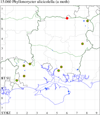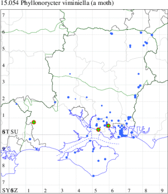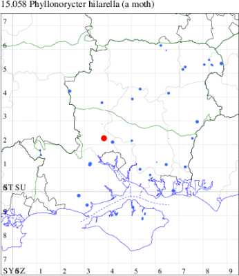 Common in hedgerows throughout much of England and Wales. Reasonably common in south-east Hampshire and on the Isle of Wight, but elsewhere in the county distinctly uncommon. Wingspan 6.5-7.5 mm. Almost always recorded in the larval stage, when the mines are fairly easy to find where they are present, the adult can be separated from other similar Phyllonorycter species on external features only with great care. Larva mines leaves of Elm, over-wintering as a pupa in a cocoon.