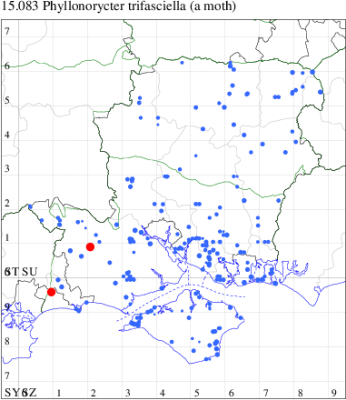 VC11: Blashford Lakes HIWWT NR*, mine, present, ulmus, 14 Oct (JOug); Hook with Warsash, mine, present, adult bred, 31 Jul; mine, present, several, 18 Sep (AMD)