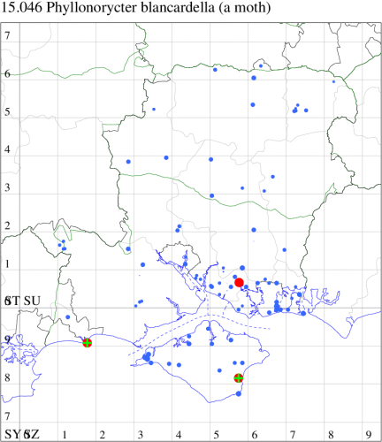 VC11: Peartree Green, Southampton, mine, present, 06 Oct; Stanpit Marsh LNR, mine, present, on oak, 04 Oct; larva, five, field obs., on oak, 04 Oct (PAB); Sway, one, 23 Jul (SKee);