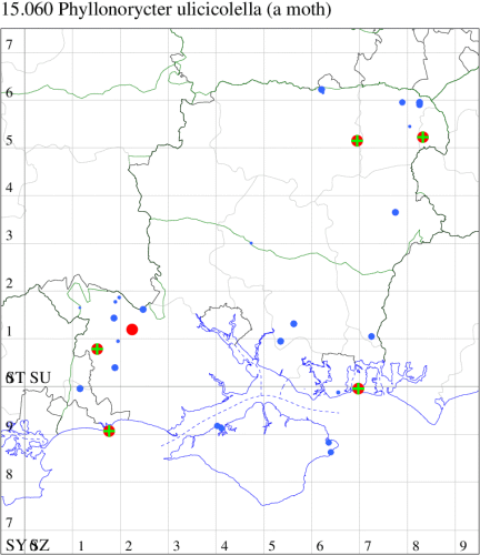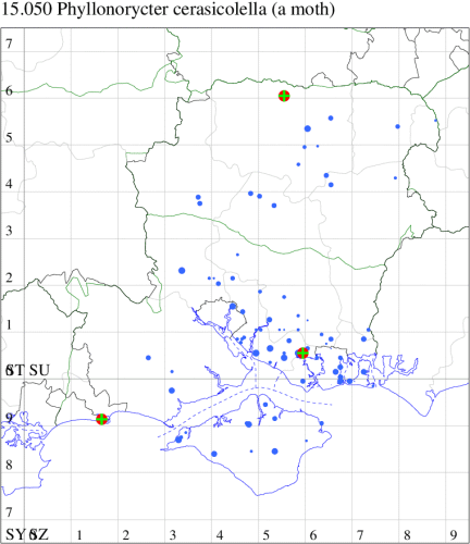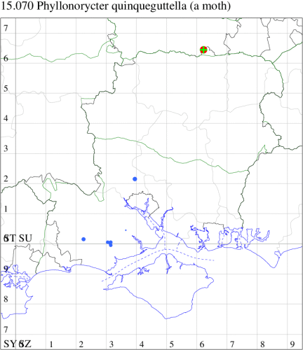 VC11: Swaythling, Southampton, one, 30 Aug (MEdg); Itchen Valley CP, one, 19 Jul (CTha); Stubbington, two, 25 Oct; one, 01 Nov (DPH); Lee-on-Solent, one, 02 Jul (IHrg); Fareham, two, 15 Oct (IMcP); Cams Bay, Fareham, mine, present, 08 Sep (AMD); Waterlooville, two, 13 Aug; one, 26 Aug; one, 13 Sep; one, 24 Sep; one, 28 Oct; one, 31 Oct; one, 10 Nov (DWhe); West Meon, mine, present, on Fagus, 10 Jun; Oxenbourne Down, mine, present, 04 Oct (AMD); Christchurch: Cross Way, one, 16 Oct; one, 22 Oct (LPyk); Wick Fields, Hengistbury Head, vacated mine, present, several, 19 Feb; Hengistbury Head, mine, present, on English Oak, 22 Aug (MJef); vacated mine, present, 03 Sep; Hengistbury Head NNR, mine, present, on beech, 22 Oct (RPH det. MJef); mine, present, quercus ilex, 27 Oct (JOug); Sway, one, 30 Jul; one, 22 Oct; one, 29 Oct (SKee); Pennington, one, 12 Apr (RFC); Browndown, five, field obs., 30 Apr; five, field obs., 01 May (IHrg); Sinah Common, mine, present, on Quercus ilex, 12 Jan; three, at dusk, 07 Nov (AMD);