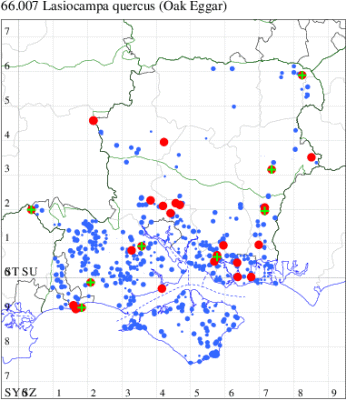 VC11: Bisterne, larva, present, field observation, 30 Aug (iNat); Frogham, one, indoors, 13 Jun (NTO); Ogden's Purlieu, NF, two, 17 Jun (AMD); Linwood, larva, one, field observation, 12 Feb (JOug); Hale Purlieu, NF, larva, one, field observation, 22 Aug (JPuz); Church Moor, NF, larva, one, field observation, 30 Apr (STho); Crab Tree Earth, NF, larva, one, field observation, 10 Jul (NAdd); Fritham, NF, larva, two, field observation, 04 Oct; larva, eight, field observation, 09 Oct; larva, two, field observation, 10 Oct (JPuz); larva, present, field observation, 23 Sep (SiDav); Ocknell Plain, NF, larva, present, field observation, 11 Oct (iNat); Withybed Bottom, NF, larva, one, field observation, 25 Sep (IRal); Stubby Copse Inclosure, NF, larva, one, field observation, 07 Oct (IWil); Matley Passage, NF, larva, present, field observation, 10 Sep (JPM); Beaulieu Road Station, NF, larva, present, field observation, 15 Aug (Unkn.); Pig Bush, NF, eight, 01 Jun (NRJ); Yew Tree Heath, NF, larva, three, field observation, 23 Aug; Marchwood, one, female, 11 Jun (TDCh); Marchwood Inclosure, NF, larva, present, field observation, 29 Jun (JHol); Dibden Purlieu, NF, one, 27 May; one, 28 May; one, 30 May; one, 02 Jun; one, 04 Jun (RAC); Oxenbourne Down, larva, present, field observation, 13 Sep (iNat);