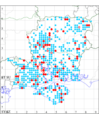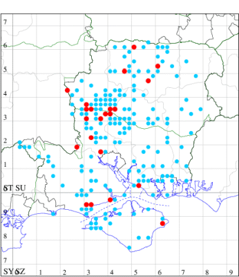 For the maps, all records prior to 2022 are shown by a blue dot (the larger the dot, the more recent), with the current year's records shown in red. As previous records are superimposed on any report for 2022, new sites have greater emphasis (i.e. will show as 'more red').