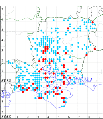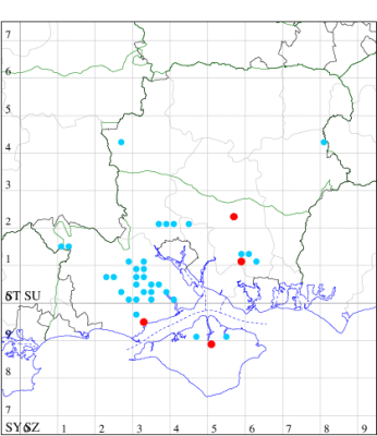 For the maps, all records prior to 2022 are shown by a blue dot (the larger the dot, the more recent), with the current year's records shown in red. As previous records are superimposed on any report for 2022, new sites have greater emphasis (i.e. will show as 'more red').