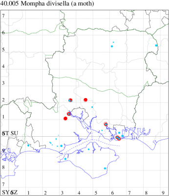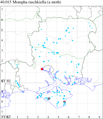 VC11: Woodlands, New Forest, present, 11 Aug (RBW); Ashurst, NF, one, 07 Aug (SAB); Totton, one, 05 Jul; one, 09 Aug (LH); Eastleigh, one, to actinic, 04 Aug; one, to actinic, 09 Aug; one, to actinic, 11 Aug (KArb); Winchester, one, 07 Aug (THW); Fareham, one, 14 Jun (KJW det. RJD); Botley, one, to actinic, 04 Aug (SLB); Milford on Sea, one, 25 Jun (MMcM); Pennington, one, 27 May; one, 24 Jun (RFC);