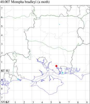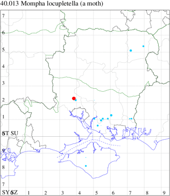 Nationally scarce (Na) in damp woodland, waste ground, open areas and damp shady places in parts of southern Wales and southern England, with records north to Cumbria. In our area it was for a long time restricted to the area of vice-county 11 around Christchurch in Dorset, but in recent years - whether through increased observer interest or genuine increase in range - has spread to a number of localities along the south coast. There is one isolated record in the north of Hampshire. First recorded on the Isle of Wight at Freshwater in 2011, where it is now annual. Wingspan 10-13 mm. Superficially similar to M. bradleyi, but white dorsal streak at base of forewing less strongly irrorate with darker scales and thorax light brown with only anterior edge dark greyish brown (MBGBI Vol 4 part 1). Larva mines stems of Broad-leaved Willowherb, Marsh Willowherb and Hoary Willowherb, forming galls.