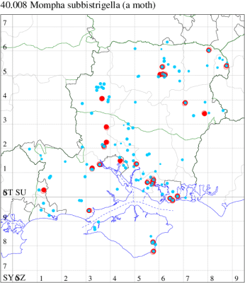 For the maps, all records prior to 2020 are shown by a blue dot (the larger the dot, the more recent), with the current year's records shown in red. As previous records are superimposed on any report for 2020, new sites have greater emphasis (i.e. will show as 'more red').