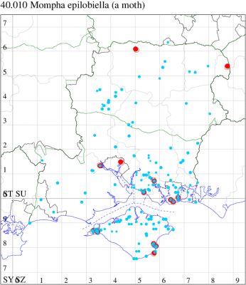 VC11: Totton, one, field observation, 09 May; one, field observation, 10 Jul; one, 10 Jul; one, 23 Jul (LH); Southampton, one, to actinic, 24 Jun (MGP det. MJW); Titchfield Haven NNR, one, 17 Jul (F.M.G.); Fareham, one, field observation, 11 Mar; one, field observation, 18 Mar; one, field observation, 03 Apr; one, field observation, 07 Apr; one, field observation, 09 Apr; one, field observation, 10 Apr; one, field observation, 12 Apr; one, field observation, 18 Apr; one, field observation, 22 Apr (KJW); Portsmouth, one, 15 Jun; one, 24 Jun; two, 25 Jun; one, 08 Jul; one, 16 Jul; one, 18 Jul; one, 22 Jul; one, 23 Jul; one, 12 Aug (IRT); Southsea, one, 03 Jul (JGe); one, 09 Apr; one, 27 Apr (JRL);