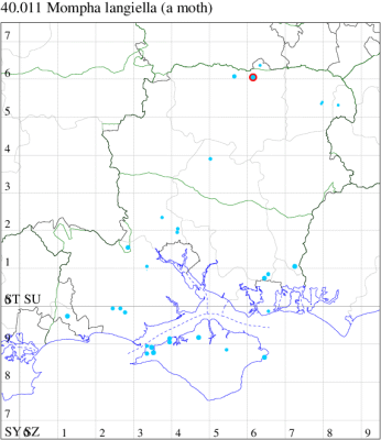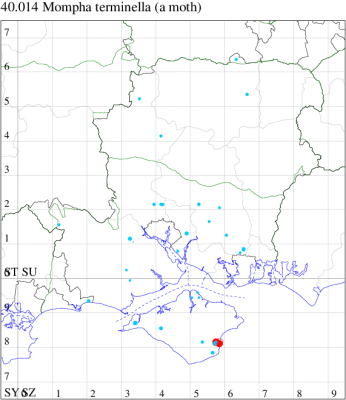 Local in damp areas throughout the British Isles. In Hampshire and on the Isle of Wight scarce and barely annual in scattered localities, mostly in south-east Hampshire. Wingspan 9-12 mm. Could be confused with M. terminella, but larger and brighter, and with cilia unicolorous. Larva mines leaves of various species of Willowherb.
