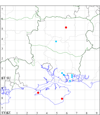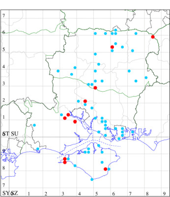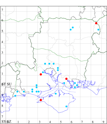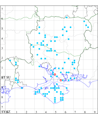 VC11: Woodlands, NF, one, 17 Jul (CJon); Totton, one, 01 Jul; one, 02 Jul; one, 03 Jul; one, field observation, 04 Jul; one, field observation, 05 Jul; four, 17 Jul; one, 18 Jul; one, 19 Jul (LHan); Woolston Road, Butlocks Heath, one, 09 Jul (PAB det. RJD); Brownwich cliffs, one, 17 Jun (RJD, MLO, ADT, DWal, KJW det. RJD); Funtley, one, 14 May; two, 07 Jul; one, 18 Jul (TDC); Fareham, one, det gen, 17 Jul (MLO det. RJD); one, field observation, 12 Mar; one, field observation, 11 Apr (KJW); Botley, one, 15 Jul (SLB); Portsmouth, three, 05 May; two, 20 Jun; five, 22 Jun; two, 03 Jul; two, 05 Jul; three, 06 Jul; one, 07 Jul; one, 09 Jul; one, 11 Jul; seven, 12 Jul; one, 13 Jul; one, 15 Jul; one, 16 Jul; one, 17 Jul; one, 26 Jul; two, 29 Jul (IRT); Hengistbury Head, two, 11 Jul (MJef); Sway, one, 22 Jun (SKee); Pennington, one, 24 Aug (RFC); Needs Ore NNR, one, 10 Jul; one, 25 Jul; one, 17 Jul; one, 29 Jul (CNB);