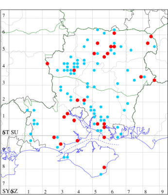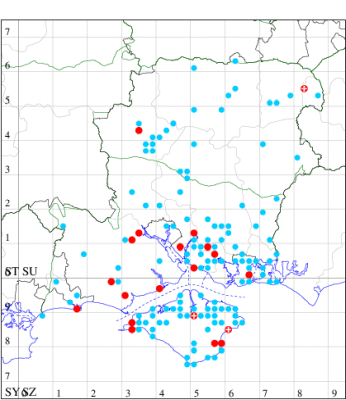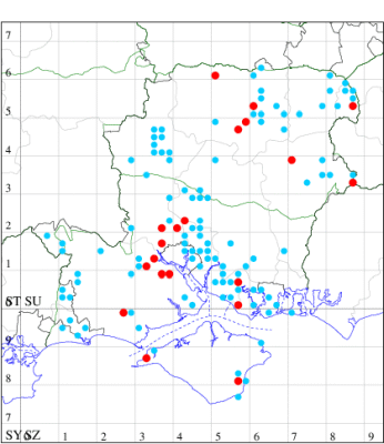 For the maps, all records prior to 2022 are shown by a blue dot (the larger the dot, the more recent), with the current year's records shown in red. As previous records are superimposed on any report for 2022, new sites have greater emphasis (i.e. will show as 'more red').