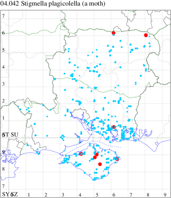 Local in woodland and heathland throughout much of southern and western Britain, north to the Lake District. In south Hampshire and on the Isle of Wight, well-distributed and relatively common, but distinctly uncommon in north Hampshire, where mainly confined to the north-eastern heaths where the foodplant grows in abundance. Wingspan 4-4.6 mm. Best identified from the larval mines on Birch, over-wintering as a pupa. The mines are described in the following link: