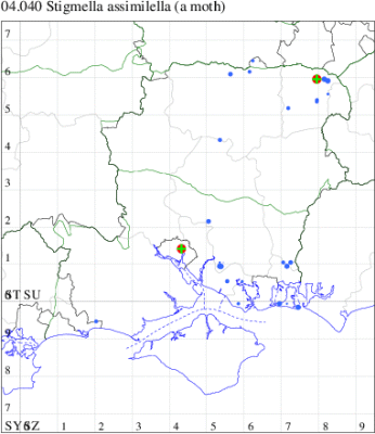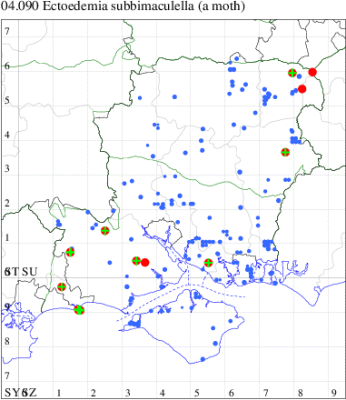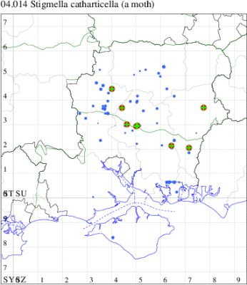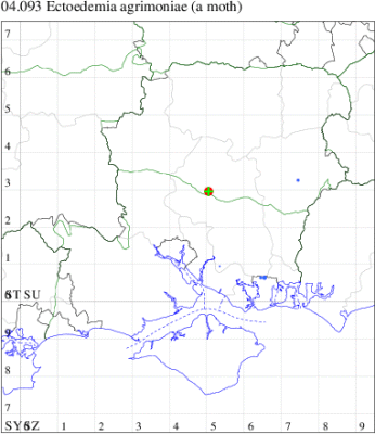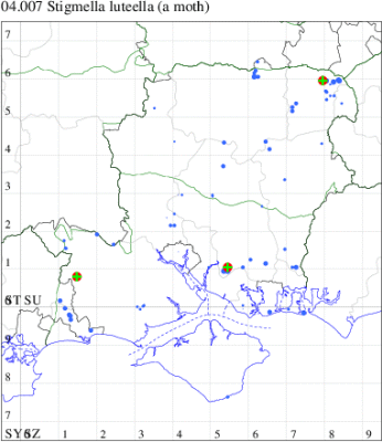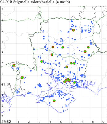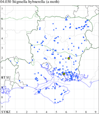 VC12: Shortheath Common, Oakhanger, mine, present, 05 Nov; Castle Bottom NNR, mine, present, 29 Oct (AMD); Fleet Pond, one, 14 Jun (MHals); Blackwater, two, gen det. , 10 Jun; one, gen det. , 12 Jun; one, gen det. , 17 Jun (BGD)