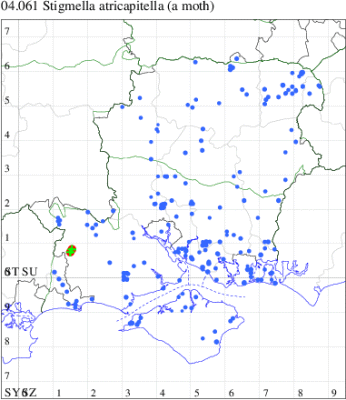 Local in woodland and heathland throughout much of southern and western Britain, north to the Lake District. In south Hampshire and on the Isle of Wight, well-distributed and relatively common, but distinctly uncommon in north Hampshire, where mainly confined to the north-eastern heaths where the foodplant grows in abundance. Wingspan 4-4.6 mm. Best identified from the larval mines on Birch, over-wintering as a pupa. The mines are described in the following link: