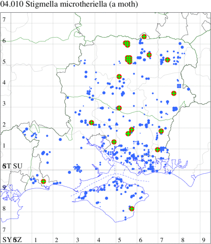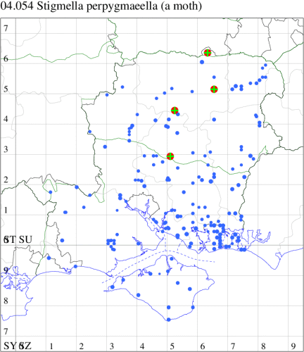 Nationally scarce (Na) on heathland, dry pastures, chalk downland and cliff-tops in parts of south-eastern England, rare elsewhere. Very few records in Hampshire, with the first modern records from Longmoor in 1976. Several were found on Petersfield Heath, and nearby in Oakhanger in 2011, and again in 2025; Very old records exist for Woodfidley in South Hampshire, and two possibly unverifiable records for the Isle of Wight from the Victorian History of the island. With a wingspan 3-4 mm, Britain's smallest moth. Most frequently recorded in the larval stage, when mines are relatively easy to find where they are present. Larva mines leaves of Sheep's Sorrel and Common Sorrel, over-wintering as a pupa. The mines are described in the following link: