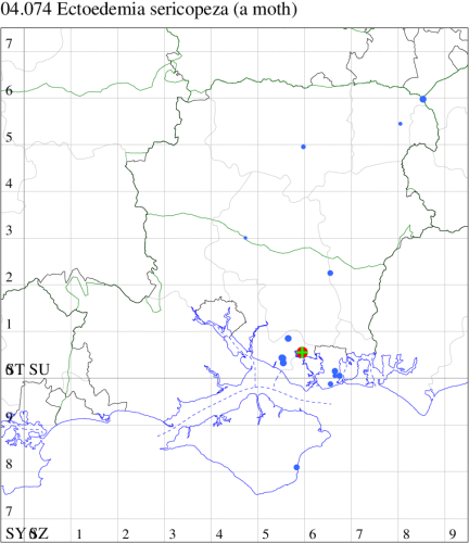 Locally distributed in woodland, gardens, orchards and parks throughout England north to the Pennines. Widespread but local across mainland Hampshire, at low densities. First recorded from the Isle of Wight in 2013, with another two years later. Wingspan 4.8-8.1 mm. The most distinctive of the Ectoedemia. Larva mines samara of Sycamore.